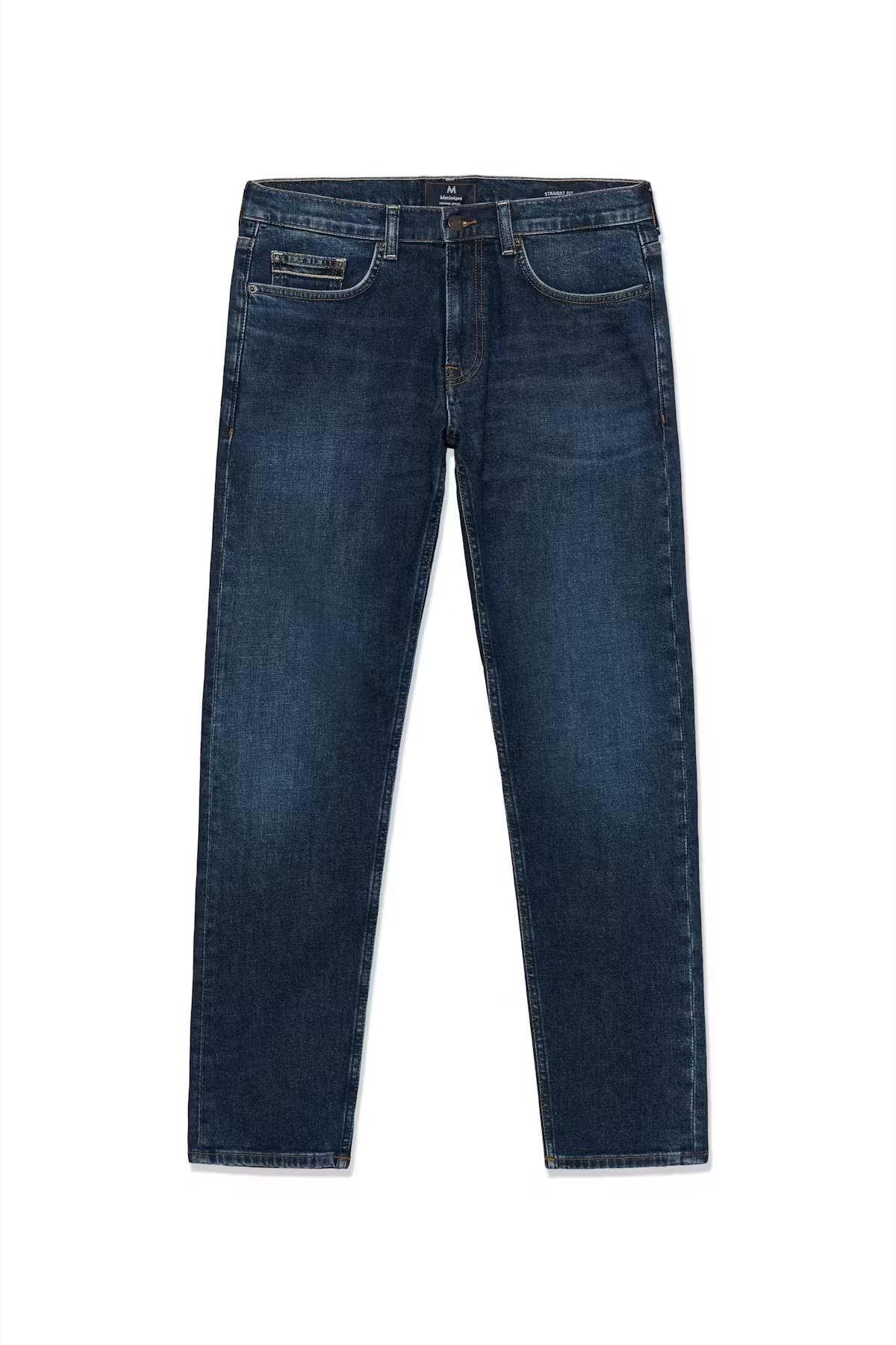 Men's jeans with a modern slim fit and classic five-pocket design. Features a zip fly, mid-rise waist, and straight leg for versatile comfort and timeless style. Ideal for casual or smart outfits. Our model is 189 cm/6’2” and is wearing size 33.