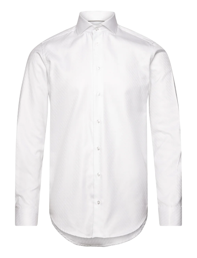 Þessi þröng skyrta er klassískt val í fataskáp hvers manns. Hún er með hnappa á kraganum og langar ermar, sem gerir hana fullkomna bæði fyrir formleg og óformleg tilefni. Skyrtan er úr hágæða efnum og er hönnuð til að veita þægilega álagningu.
